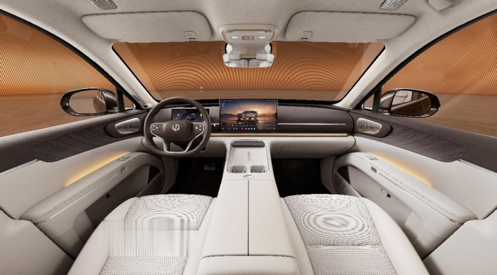 进入零跑D19座舱,“悦享新境”主题内饰以克制有序的设计语言,打造更高阶的豪华氛围。双层叠环绕座舱从中控延展至门板与音响,超椭圆曲线取代棱角,带来纯粹放松感。全车软质包覆达25平方米,触手可及皆柔软。